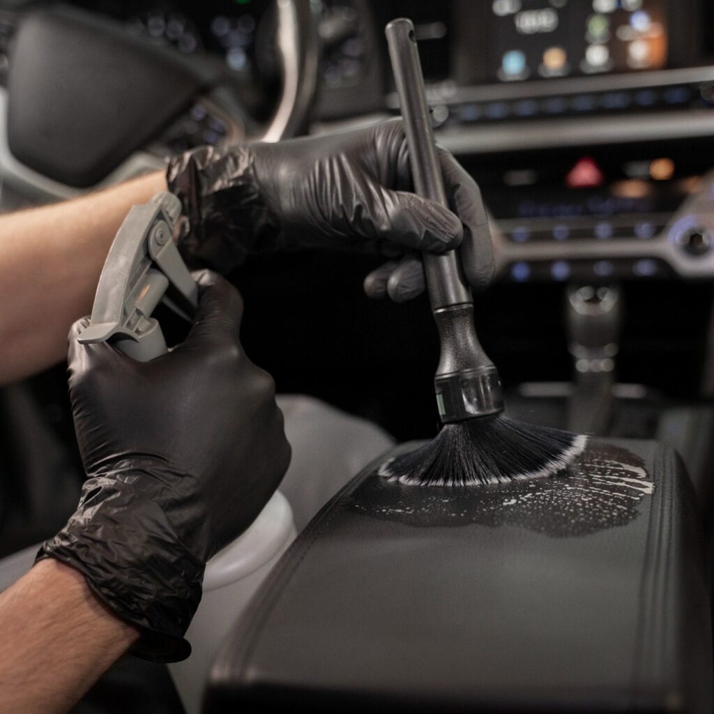 Careful cleaning and wipe down of dashboards, center consoles, door panels, and trim.